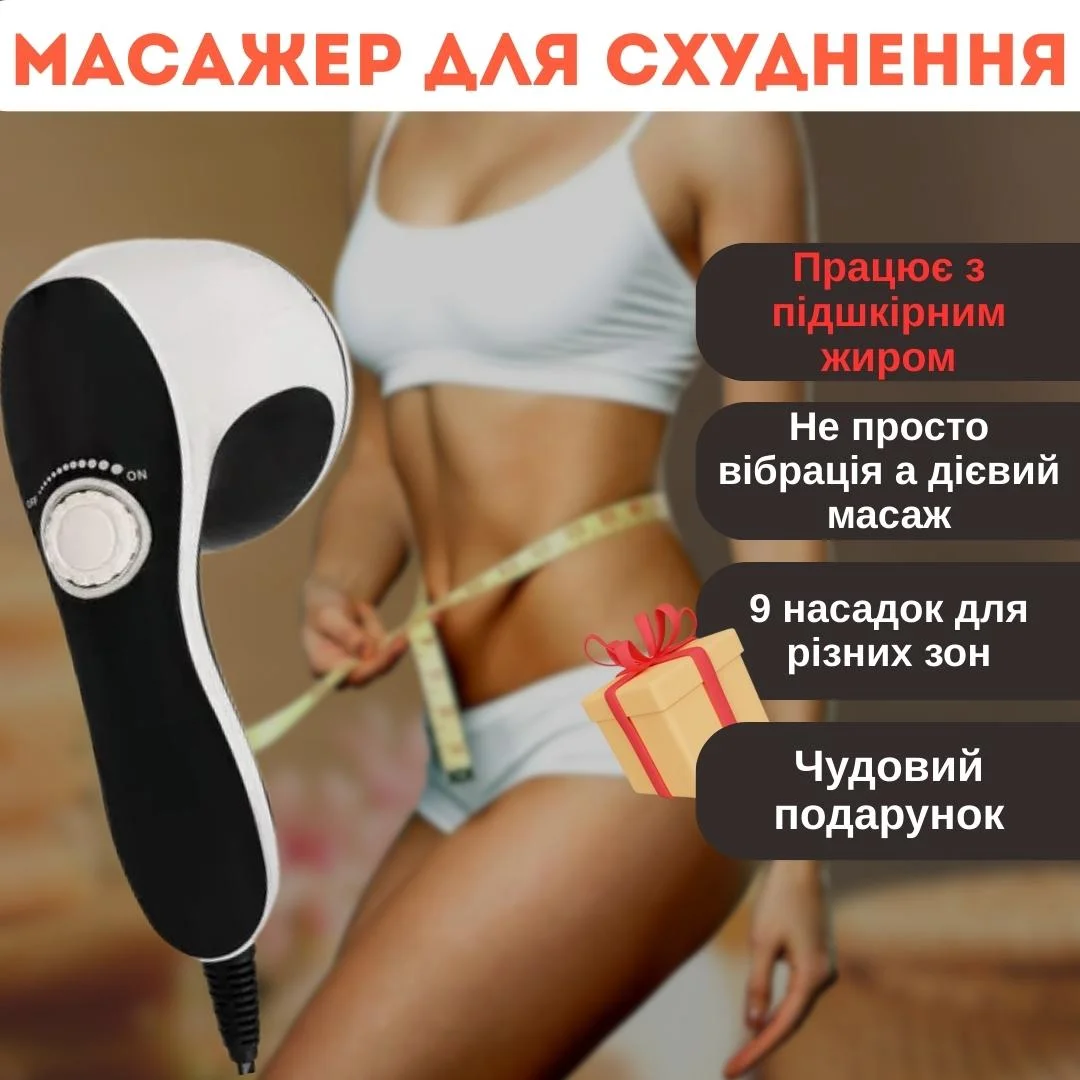 ЗІ ЗНИЖКОЮ 35%Масажер 9в1 створений для домашнього антицелюлітного догляду і розслаблення м’язів. Вібрація разом з інфрачервоним прогрівом покращує кровообіг і тонус шкіри при регулярному використанні. Дев’ять насадок дозволяють працювати з різними зонами тіла. Підходить для щоденного самомасажу без відвідування салонів.